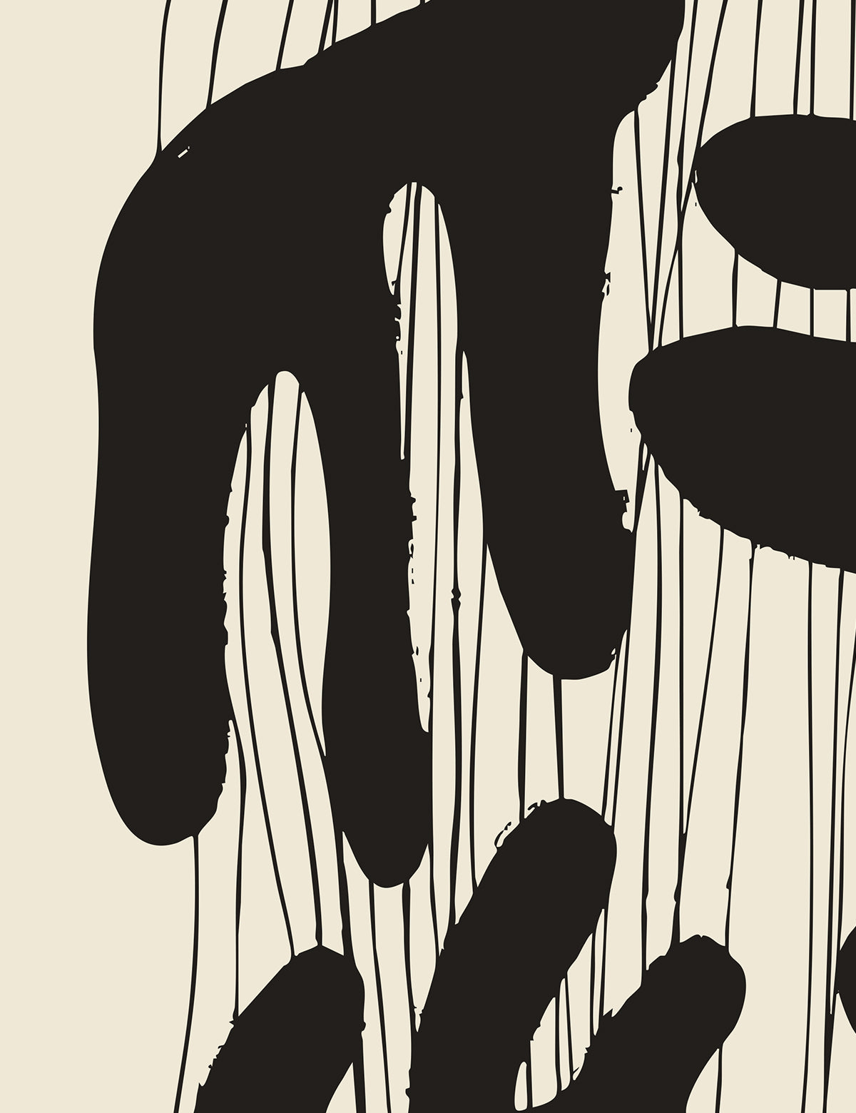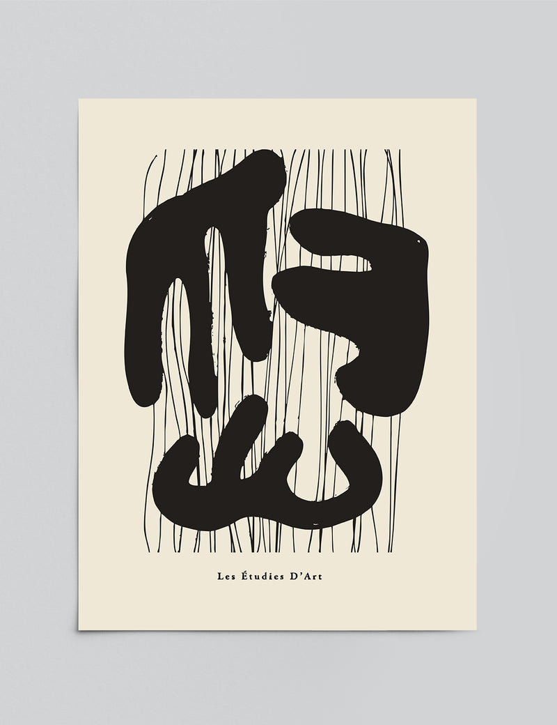 A bold exploration of movement and shape. Soft, flowing forms rise and overlap against fine vertical lines, creating a striking contrast between fluid and structured elements. The artwork feels tactile and expressive, as if the shapes were moulded by hand and brushed into place.