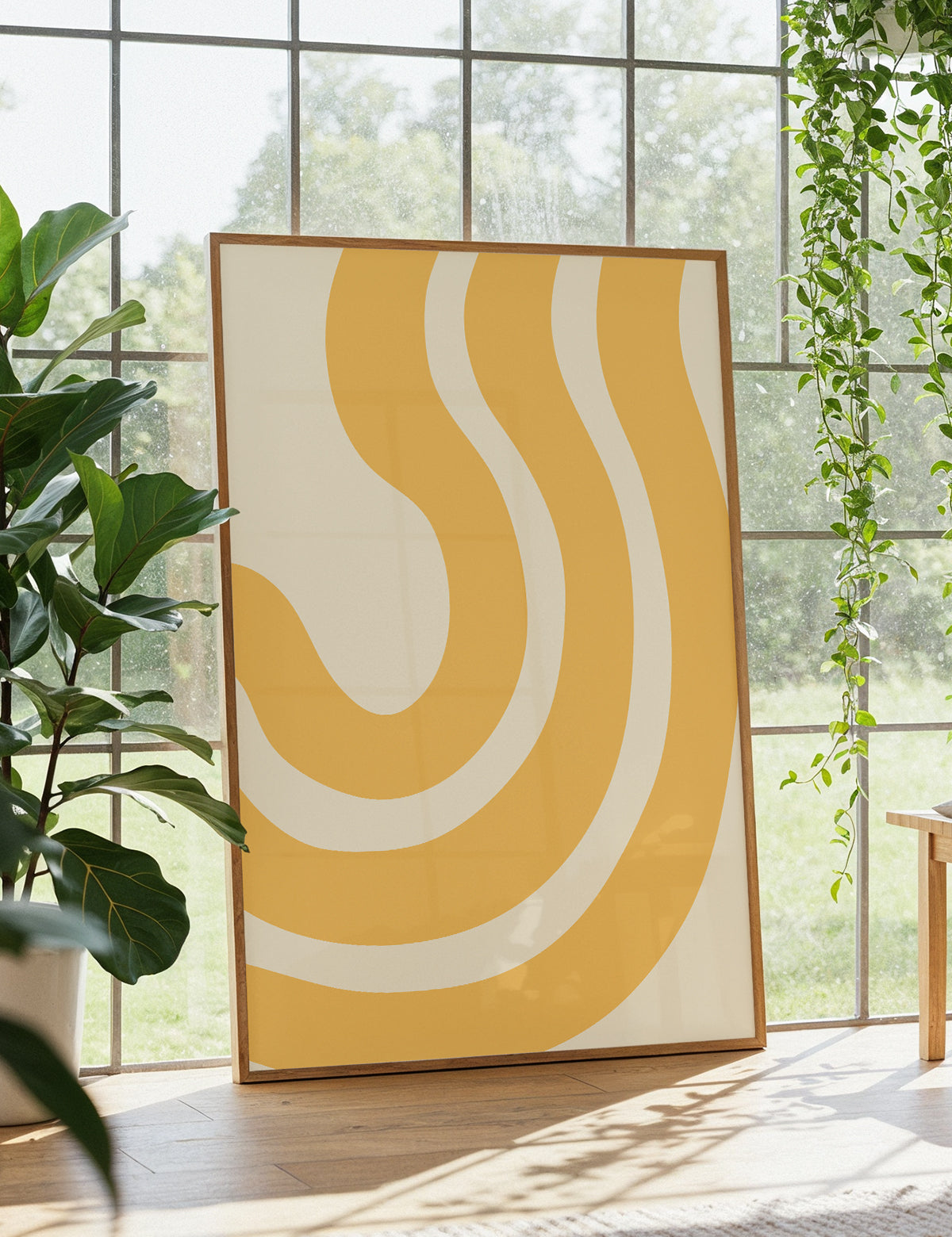 Drift explores the gentle movement of form through soft, curving lines that feel both fluid and grounded. The composition evokes the sensation of slow motion — like sand shaped by wind or ripples forming across still water. Its minimal yet expressive pattern adds a sense of warmth and rhythm to any interior.