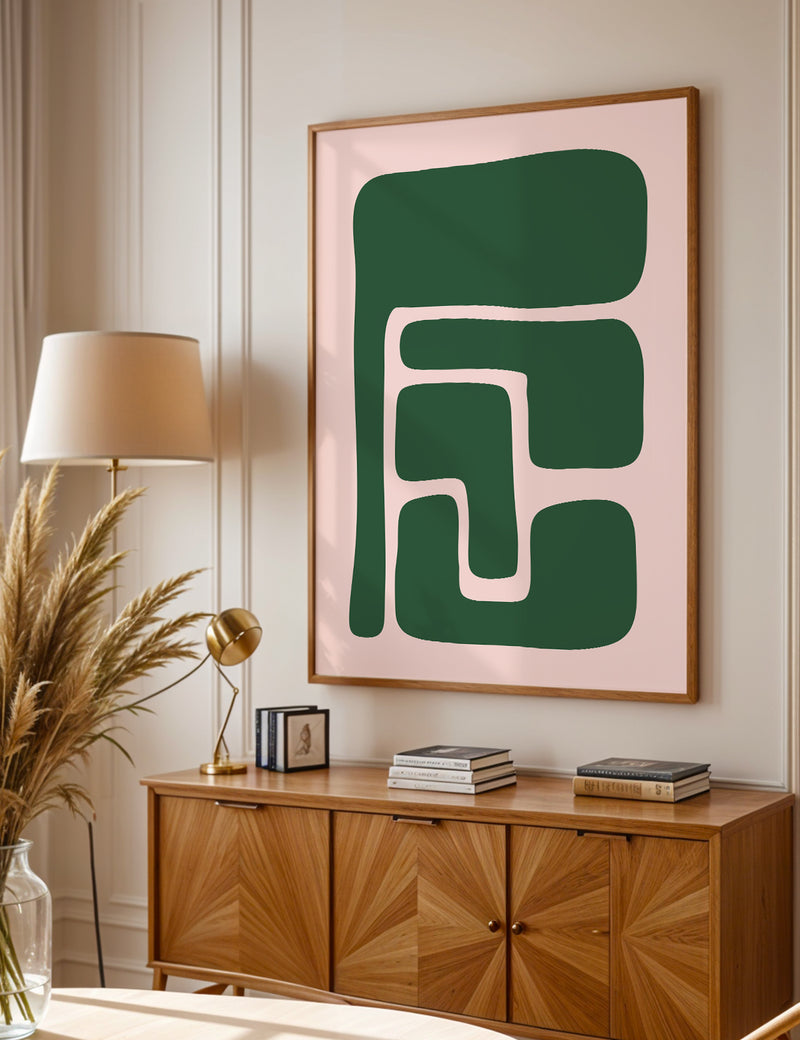 Structured Form explores the harmony between geometry and organic flow. The composition’s bold, rounded shapes create a rhythm that feels both grounded and fluid, offering a contemporary interpretation of balance and form.