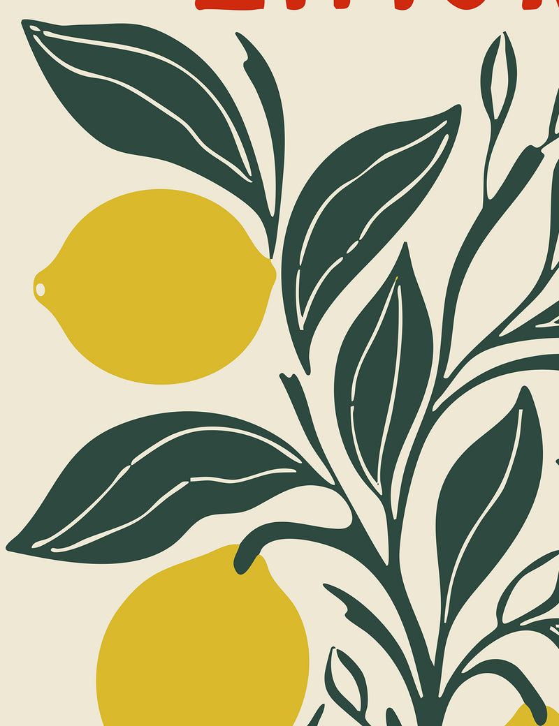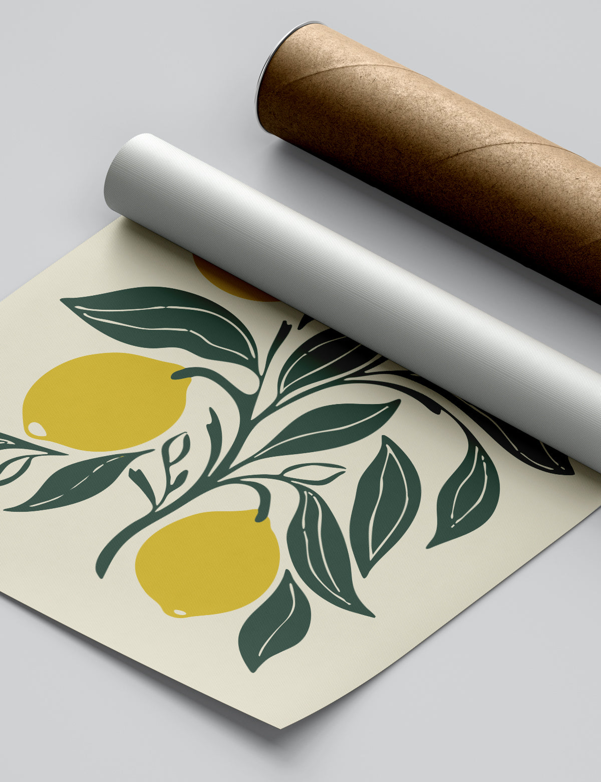 Bring a burst of Mediterranean warmth into your home with Sunlit Citrus Branch. This vibrant illustration captures the charm of ripe lemons nestled amongst deep green leaves, creating a lively and uplifting focal point for any space.